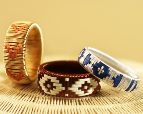 The Wounaan inhabit the rainforests of Chocó. Their language is Wounaan meu. They are renowned for werregue basketry, executed in tight spiral stitching with natural dyes and motifs of myth and daily life. Production is community based, sustaining livelihoods and safeguarding ancestral knowledge and forests. Some pieces can even hold water.
