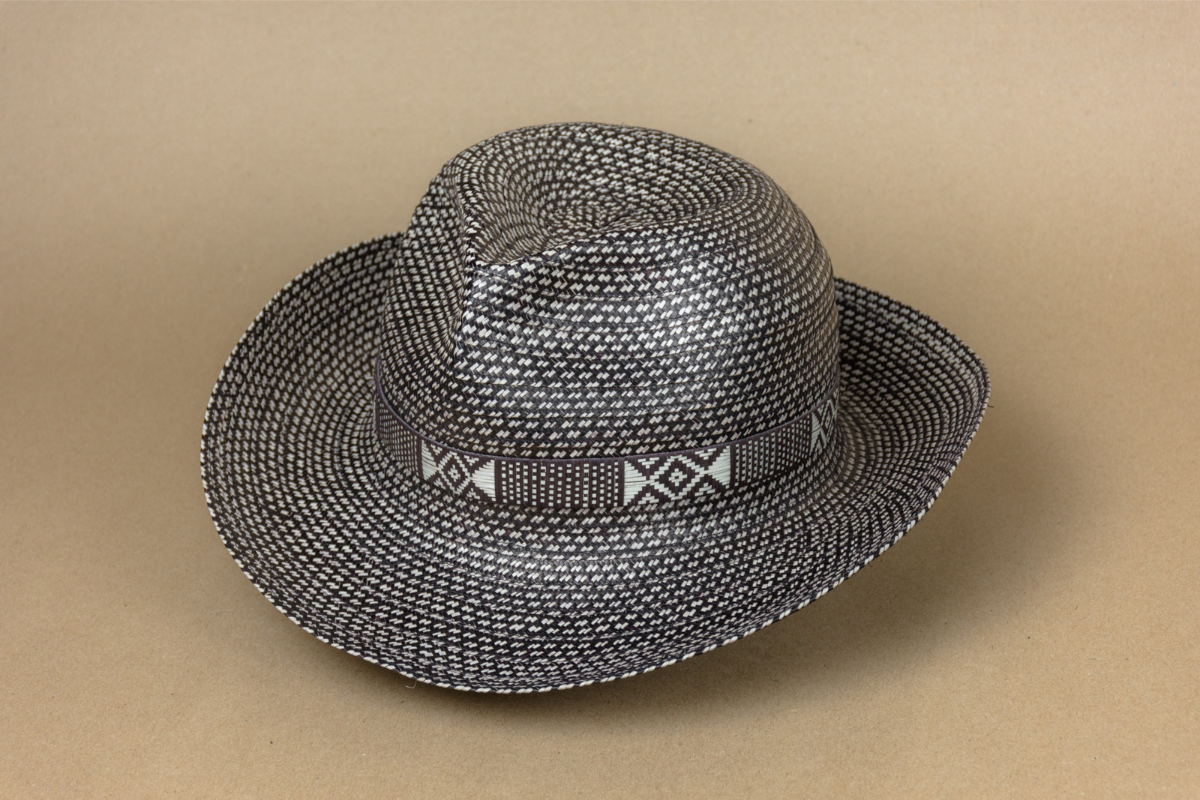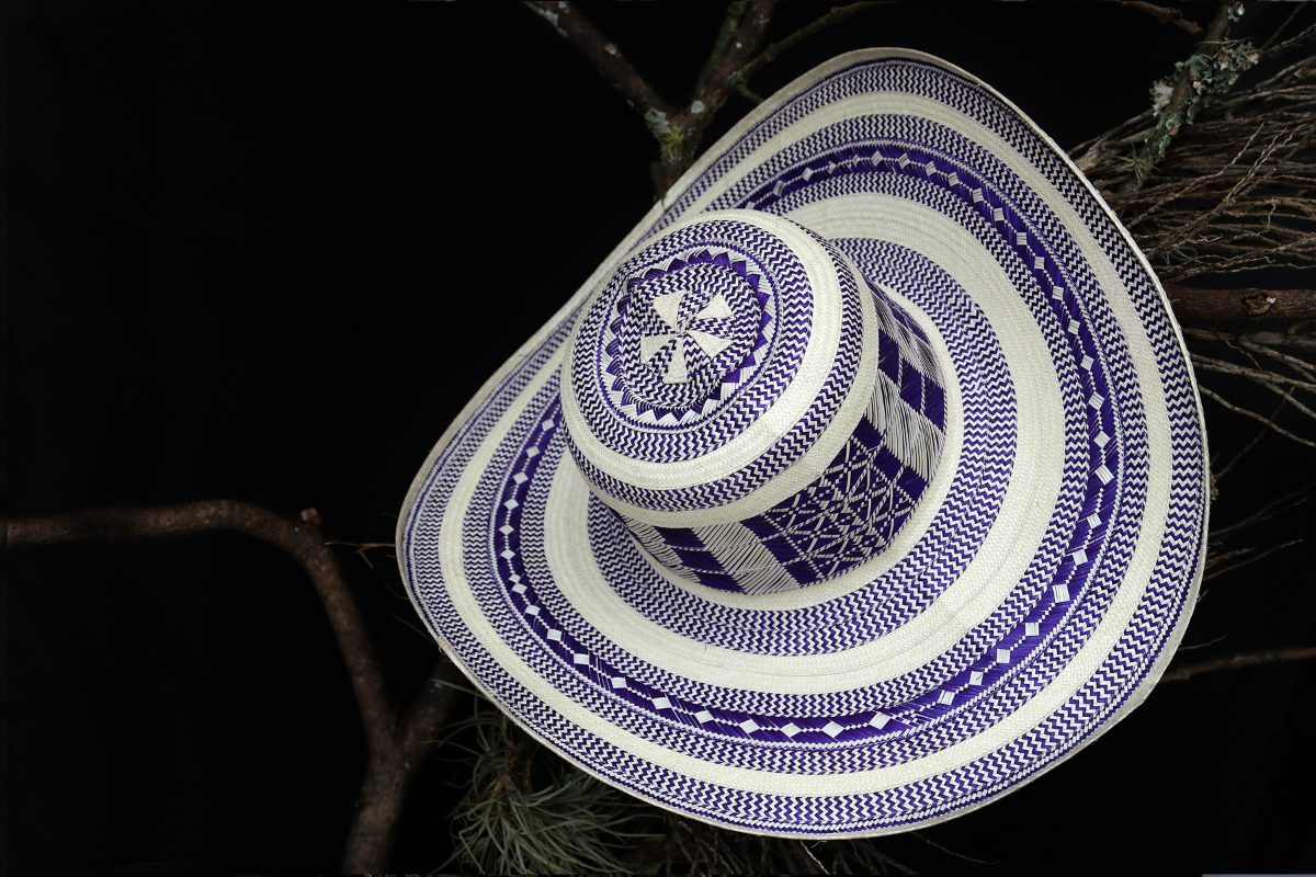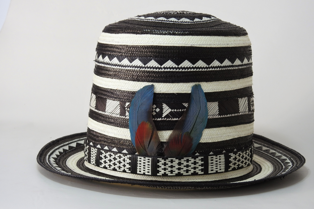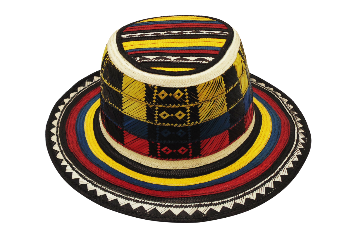 The Zenú artisan community works with arrow cane fiber (*Gynerium sagittatum*), a natural material cultivated, harvested, and transformed through an ancestral process that reflects both family roles and cultural identity. After the plant is harvested, the fiber is extracted by hand, scraped from the leaves, cut into thin flexible strips (“arrows”), washed, dried, and often dyed using local plants and natural materials such as leaves, roots, seeds, mud, clays, and minerals (with occasional industrial dyes for brighter tones). Women primarily lead the braiding and weaving, forming braided ribbons whose thread count—often ranging from 9 to 28 pairs—directly influences quality, complexity, production time, and value; finer, stronger fibers and more intricate color work also increase the craftsmanship required. These techniques are used to create iconic pieces such as Vueltiao hats, which are finished with reinforced edges and designed to be foldable for easy transport. Beyond their function, each work carries Zenú symbolism through “pintas,” a distinctive geometric language that depicts elements of local fauna, territory, clans, borders, and cosmology—preserving a legacy passed down through generations and reinforcing a living connection to nature and Mother Earth while sustaining the community’s economy in the Tuchín reservation.