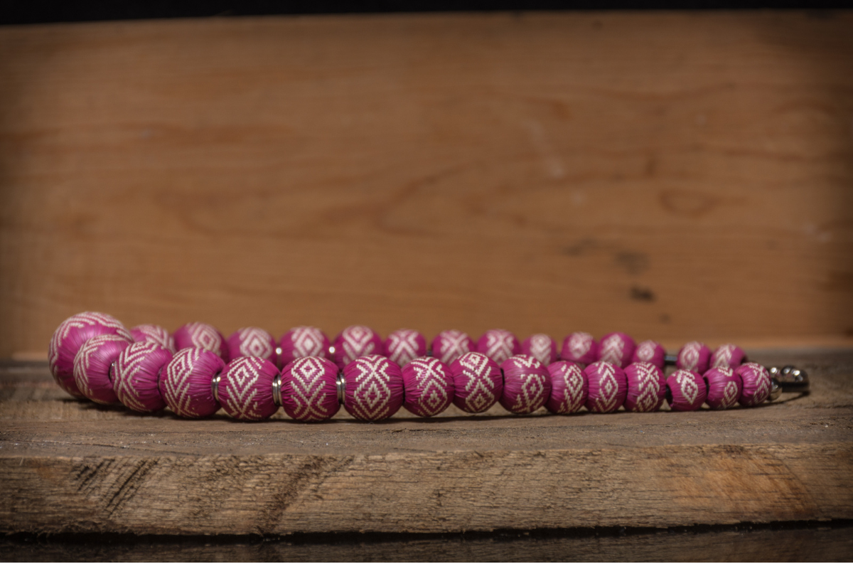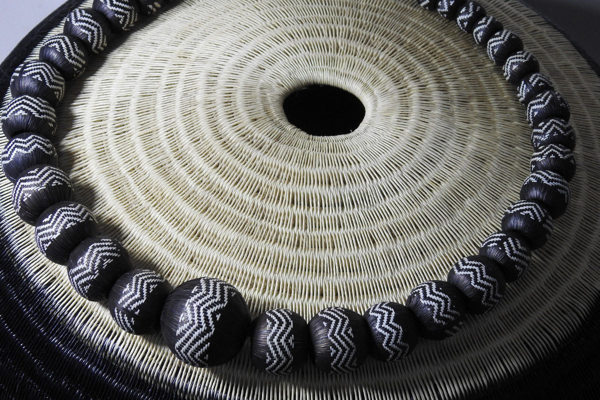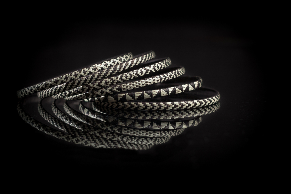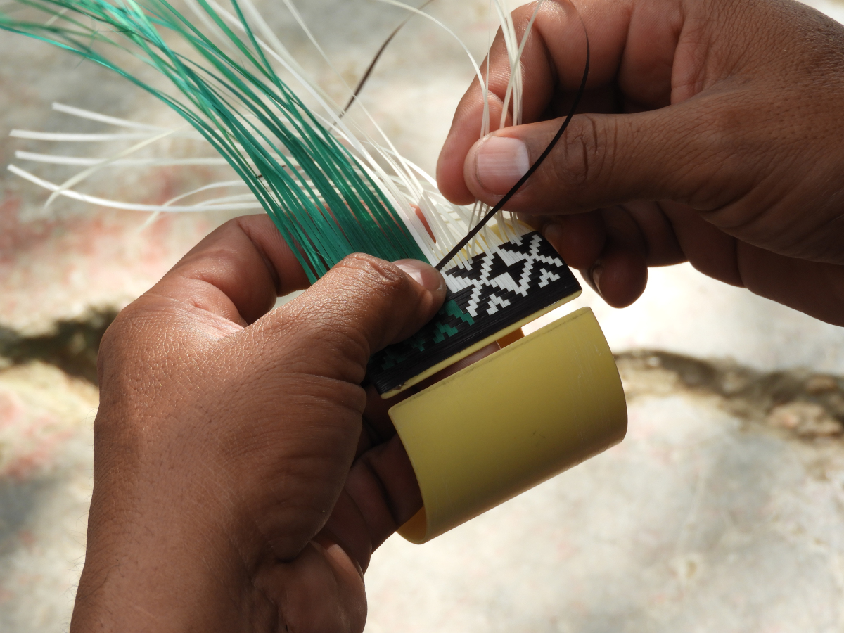 The Zenú artisan community works with arrow cane fiber (*Gynerium sagittatum*), a natural material cultivated, harvested, and transformed through an ancestral process that reflects both family roles and cultural identity. After the plant is harvested, the fiber is extracted by hand, scraped from the leaves, cut into thin flexible strips (“arrows”), washed, dried, and often dyed using local plants and natural materials such as leaves, roots, seeds, mud, clays, and minerals (with occasional industrial dyes for brighter tones). Women primarily lead the braiding and weaving, forming braided ribbons whose thread count—often ranging from 9 to 28 pairs—directly influences quality, complexity, production time, and value; finer, stronger fibers and more intricate color work also increase the craftsmanship required. These techniques are used to create iconic pieces such as Vueltiao hats, which are finished with reinforced edges and designed to be foldable for easy transport. Beyond their function, each work carries Zenú symbolism through “pintas,” a distinctive geometric language that depicts elements of local fauna, territory, clans, borders, and cosmology—preserving a legacy passed down through generations and reinforcing a living connection to nature and Mother Earth while sustaining the community’s economy in the Tuchín reservation.