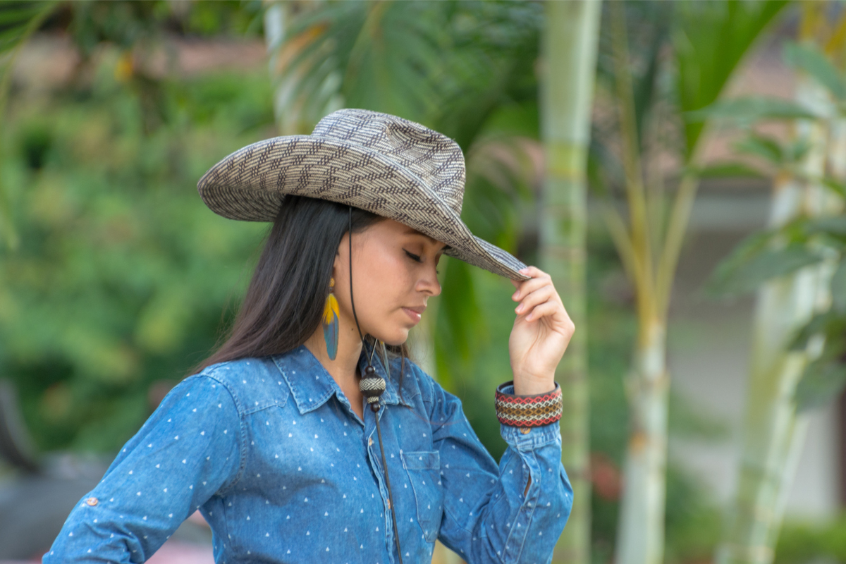 Their most emblematic creation is the sombrero vueltiao, meticulously handwoven from caña flecha (Gynerium sagittatum). The fiber is responsibly harvested, shaded, bleached or naturally dyed, and braided into strips that form the hat’s characteristic “vueltas.” Distinctive geometric motifs encode narratives of territory, lineage, and nature. Beyond the hat, artisans produce belts, handbags, placemats, and decorative pieces that combine durability, lightness, and refined restraint.